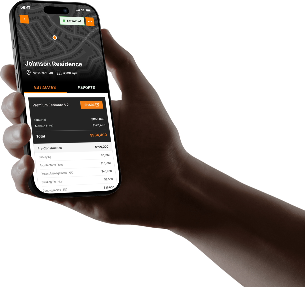 The clipboard is dead. Build, edit, and send complete estimates directly from the job site. No more telling clients, "I'll email you a quote tonight."